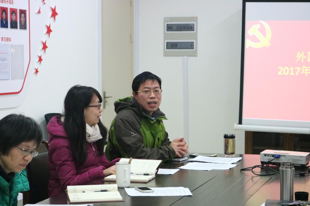2018年1月8日下午15:30,外国语学院2017年度党支部考核会议在文理楼123召开,会议由外国语学院党委书记许金权主持,院长蔡慧萍,副院长周亚萍,党委委员孔繁春、徐向飞以及党支部书记参加了会议。