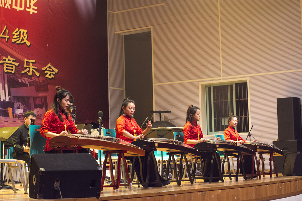 脍炙人口的民乐合奏《好汉歌》响起,演出拉开了序幕。笙重奏《阿细欢歌》、古筝重奏《弥渡山歌》、二胡重奏《战马奔腾》……实习乐团充分运用乐器演奏技巧,表演精细入微,乐曲独特的艺术魅力展现得淋漓精致。一曲流行歌曲《金银岛》,极具有张力和表现力的声音,将现场气氛推向高潮。合唱队用歌声诠释了名家名曲《我期待》《布兰诗歌》,令人久久回味。最后,全场同声齐唱《歌唱祖国》,声音宏大、震撼人心,音乐会也圆满落幕。