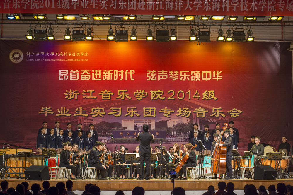 昂首奋进新时代,弦声琴乐颂中华。11月28日晚,浙江音乐学院2014级毕业生实习乐团专场音乐会在东海科学技术学院体育馆盛大举行,学院副院长张玉莲、孙瑜,纪委书记夏志芳,副院长姚会彦与近2000名师生一同欣赏了演出。