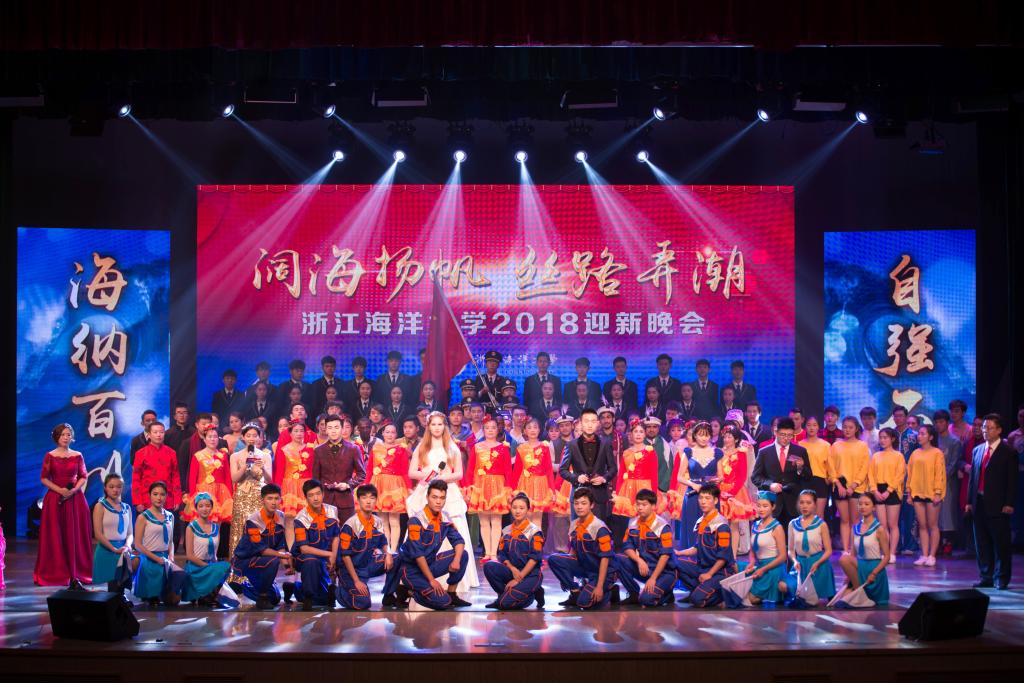晚会上,留学生们带来了一首《we are the world》,得到了台下观众的热烈响应,全场观众都跟着挥手打拍子。“为了这场演出,国际海洋教育学院的师生们对演唱曲目、参与人员、演出形式做了好几次大调整,换了曲目,演出人员从6个人开始,逐渐有学生加入,最终来自7个国家的19人登台献唱。”国际学院的刘超杰老师告诉记者,通过这次活动,留学生更加团结了,大家都很开心,来自俄罗斯的Dasha还自荐做主持人,成为晚会的又一亮点。而作为晚会的另一重量级演出,舞蹈《初航》入选后,负责舞蹈的孙靓老师召回了已经去实习的大四学生,开展突击训练。舞蹈队克服了一切困难,把节目跳到了原有的水平,虽然在演出结尾时的过渡时段直接把节目切出,造成了一点小遗憾,但舞台经验丰富的同学们发现问题后很快离场,以使观众们毫无察觉,总体说来,《初航》给观众带来了精彩的视觉感受。
