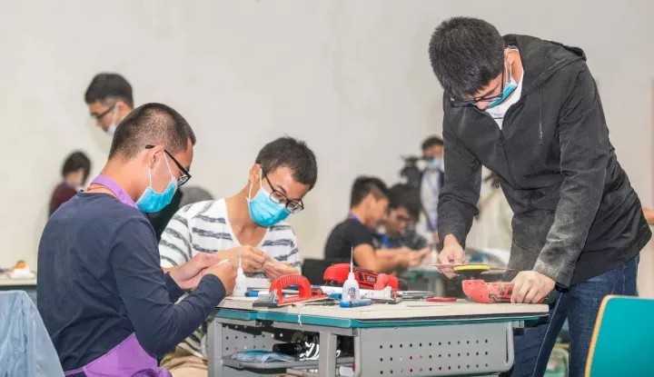 制作现场,参赛队伍利用指定的材料,按照他们自己的想法,设计出滑翔机的形状。制作滑翔机的材料是一种很轻的木质材料,拿在手上几乎感觉不出重量。有的参赛队伍为了减轻重量,在机翼处镂空了两处,然后用透明胶带粘上空缺的地方。在机翼的设置上,每支参赛队有着不同的制作,角度,长度等不尽相同。参赛者们埋头制作模型,现场完全沉浸在制作模型的氛围中。每个参赛者都尽自己最大的努力来制作出出色的作品。指导老师们也期待地望着各位参赛选手们,不时地拍照留念。制作模型是个漫长的过程,但各位参赛者们丝毫没有表现出疲惫的样子,一直保持着精力充沛的状态,发挥出自己最好的水平。